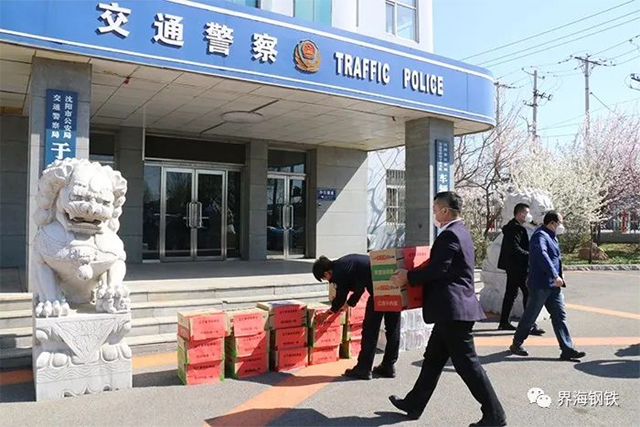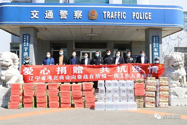按下暫停鍵20天后,沈陽疫情終于趨向平穩(wěn),迎來了復(fù)工復(fù)產(chǎn),春暖花開。 在本輪沈陽疫情防控過程中,交通警察不分晝夜一直守衛(wèi)在各高速公路口和交通要塞,為人民群眾的健康安全保駕護(hù)航。為表達(dá)對奮戰(zhàn)在防疫一線廣大交警的感謝和誠摯敬意,遼寧省河北商會倡議會員愛心捐款,為防疫一線送去溫暖。 身為商會副會長的界海鋼鐵總經(jīng)理郭德海先生更是對奮戰(zhàn)在抗疫前線的交警勇士們心存敬意,迅速參與到協(xié)會活動中,積極組織、策劃、采買等活動籌備等事宜。